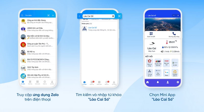 Điều quan trọng là để sử dụng hàng loạt tính năng thiết thực trên, người dân không cần tải, cài đặt từng ứng dụng riêng lẻ hay đăng ký tài khoản mới, mà thông qua Zalo, người dùng chỉ cần tìm kiếm từ khóa “Lào Cai Số”, sau đó chọn mini app “Lào Cai Số”.