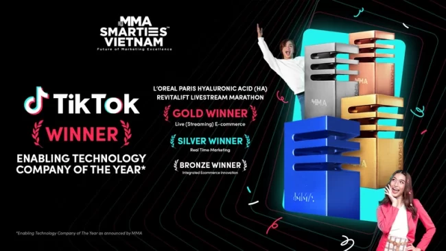 Tại lễ trao giải thưởng thường niên về tiếp thị MMA SMARTIES Việt Nam 2023, chuỗi hoạt động Livestream Marathon kéo dài trong 7 ngày liên tiếp của nhãn hàng L’Oréal Paris trên nền tảng TikTok đã được xướng tên trong 3 giải thưởng. Đó là một giải Vàng hạng mục Live (Streaming) E-commerce (Livestream thương mại điện tử), một giải Bạc thuộc hạng mục Real Time Marketing (Tiếp thị thời gian thực) và một giải Đồng hạng mục Vietnam – Intergrated Ecommerce Innovation (Đổi mới sáng tạo TMĐT tích hợp). Bản thân TikTok cũng năm đầu tiên TikTok được trao giải thưởng mới “Enabling Technology Company Of The Year” (hạng mục Vietnam SMARTIES Industry Awards) dành cho công ty ứng dụng công nghệ xuất sắc nhất trong năm.