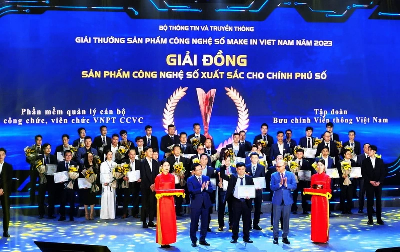 Tại Lễ công bố và trao Giải thưởng Sản phẩm Công nghệ số Make in Vietnam 2023 vừa được Bộ Thông tin và Truyền thông tổ chức sáng 11-12-2023 tại Quảng Ninh, Tập đoàn Bưu chính – Viễn thông Việt Nam VNPT đã có 6 sản phẩm số được vinh danh trong Top 10 ở 3 hạng mục của giải thưởng, đặc biệt trong đó có 1 giải Bạc và 1 giải Đồng. Lễ trao giải này diễn ra trong khuôn khổ Diễn đàn Quốc gia Phát triển doanh nghiệp Công nghệ số Việt Nam lần thứ 5 VFTE 2023.