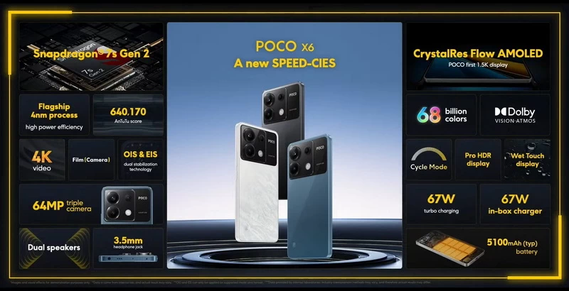 Thông số kỹ thuật tham khảo của: POCO X6 Pro 5G | POCO X6 5G | POCO M6 PRO