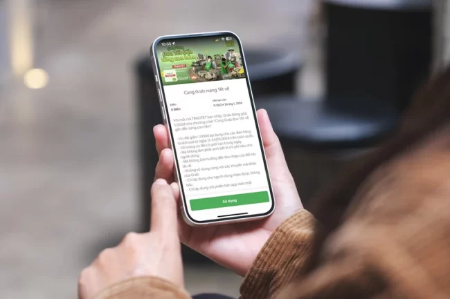 Kể từ ngày 12-1 đến ngày 24-1-2024, với mỗi chuyến xe GrabCar, GrabBike hoặc đơn hàng GrabFood, GrabMart, GrabExpress được người dùng nhập mã “TRAOTET”, Grab Việt Nam sẽ đóng góp 5.000 đồng cho chương trình “Cùng Grab đưa Tết đến từng con hẻm”.Dự kiến vào cuối tháng 1 và đầu tháng 2-2024, chương trình sẽ trao tặng 1.000 phần quà Tết thiết thực đến với người có hoàn cảnh khó khăn, góp phần mang đến cho họ một cái Tết Giáp Thìn đầm ấm, đủ đầy hơn. Chương trình còn có sự đồng hành của đối tác Mondelez Kinh Đô.