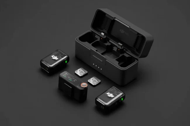 Để mở rộng hơn nữa phạm vi sáng tạo của người dùng, DJI cung cấp nhiều phụ kiện thiết thực (bán riêng), chẳng hạn như micrô cài áo DJI và hộp sạc DJI Mic 2.