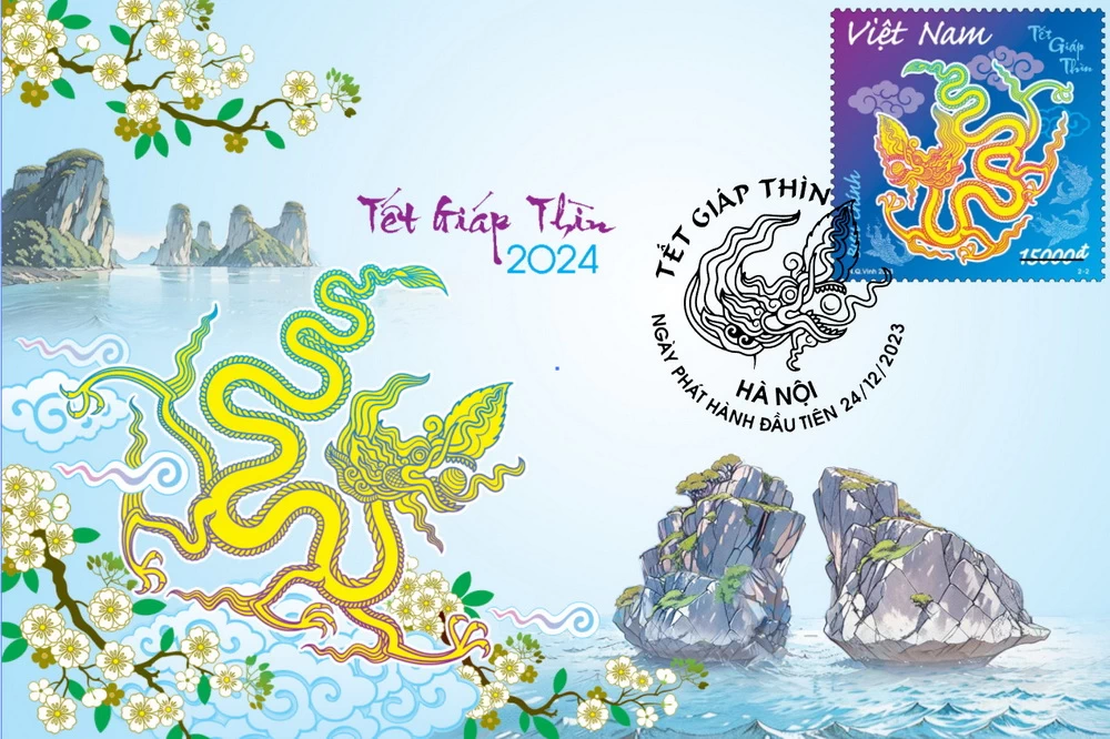 Bộ tem bưu chính “Tết Giáp Thìn” gồm 2 mẫu tem khuôn khổ 37 x 37mm và 1 blốc tem kích thước 80 x 80mm, do họa sĩ Nguyễn Quang Vinh, Tổng Công ty Bưu điện Việt Nam, thiết kế. Bô tem được Công ty Tem Việt Nam phát hành ngày 24-12-2023 với giá mặt là 4.000đ, 15.000đ và 15.000đ.