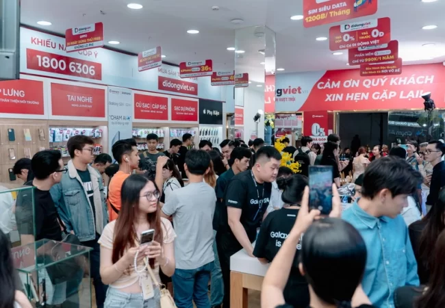 Khách hàng mua sắm sản phẩm công nghệ tại một cửa hàng Di Động Việt.
