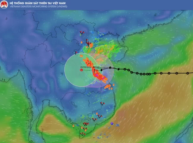 Hoàn lưu bão số 4 gây mưa lớn cho nhiều tỉnh, thành Bắc và Trung Trung Bộ. (Ảnh của Hệ thống Giám sát Thiên tai Việt Nam, VNDMS)