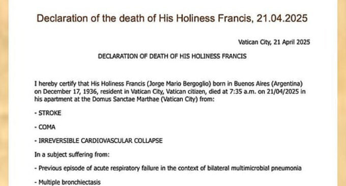 Nguyên nhân chính thức về sự ra đi của Đức Giáo hoàng Francis (Phanxicô)
