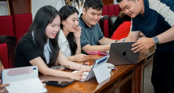 Không chỉ dừng lại ở kiến thức lý thuyết, buổi workshop còn diễn ra trong không khí sôi nổi khi sinh viên tham gia trao đổi, trải nghiệm trực tiếp các tính năng trong ứng dụng Freeform như ghi chép, vẽ, phác thảo ý tưởng, chia sẻ tệp tin và cộng tác với nhiều người trên cùng một mặt phẳng kỹ thuật số… trên iPad và MacBook.