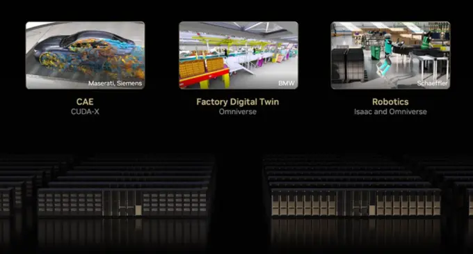 Ngoài ra, NVIDIA đã thông báo rằng các nhà sản xuất Châu Âu như BMW Group, Maserati, Mercedes-Benz và Schaeffler đang chuyển đổi vòng đời sản phẩm đầu cuối của họ – từ thiết kế sản phẩm mô phỏng và hoạch định nhà máy đến các hoạt động và hậu cần dựa trên AI – bằng cách chạy các ứng dụng được NVIDIA hỗ trợ từ các công ty phần mềm hàng đầu như Ansys, Cadence và Siemens.