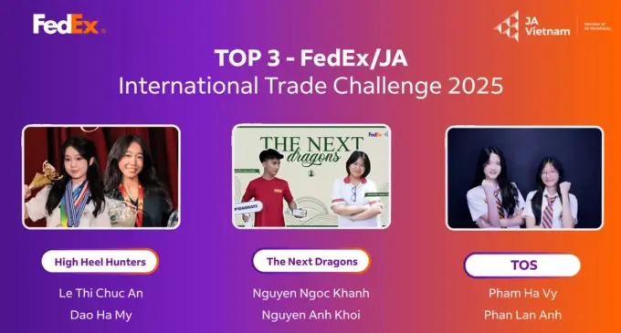 Sáu học sinh thuộc 3 đội xuất sắc nhất TOP 3 vòng chung kết quốc gia đã được chọn để đại diện Việt Nam tại vòng chung kết Cuộc thi Thử thách Thương mại Quốc tế FedEx/Junior Achievement (FedEx/JA ITC) năm 2025 khu vực Châu Á – Thái Bình Dương, do Tập đoàn FedEx Express tổ chức tại Singapore vào tháng 8-2025.