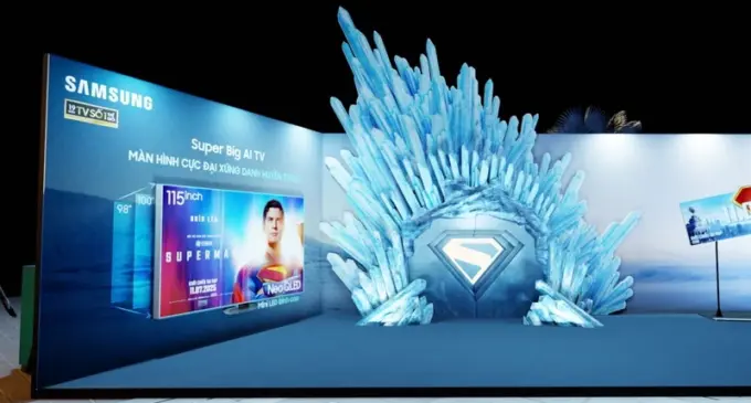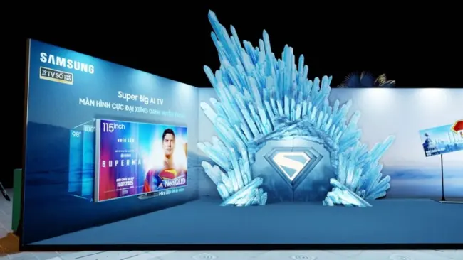 Là một phần trong chuỗi hoạt động hợp tác quảng bá “bom tấn” Superman (bản 2025), Samsung đã bố trí không gian trưng bày mô hình Pháo đài Cô độc (Fortress of Solitude) của Superman, với mô phỏng kích thước thực tế giúp người dùng hình dung kích cỡ TV khổng lồ. Các khu vực này được đặt tại sảnh trước của Trung tâm thương mại AEON Mall Hà Đông (Hà Nội) và Trung tâm thương mại Vincom Landmark 81 (TP.HCM), từ ngày 3-7 đến ngày 20-7-2025.