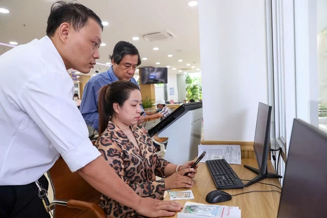 Cán bộ phường Bình Tiên (TP HCM) ứng dụng công nghệ hỗ trợ người dân làm thủ tục công trực tuyến. (Ảnh: HOÀNG TRIỀU/NLĐ/Internet. Thanks)