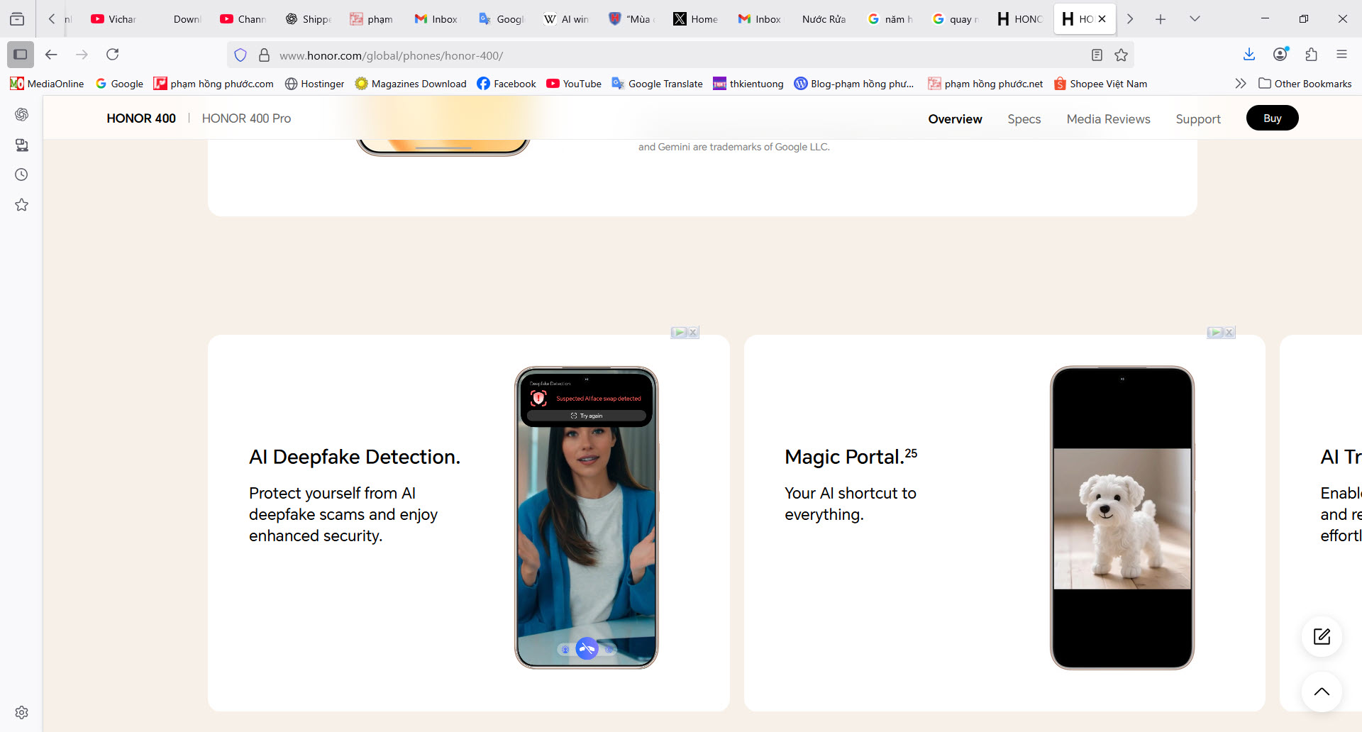 - Thông tin chi tiết của HONOR 400: Tiếng Việt | English