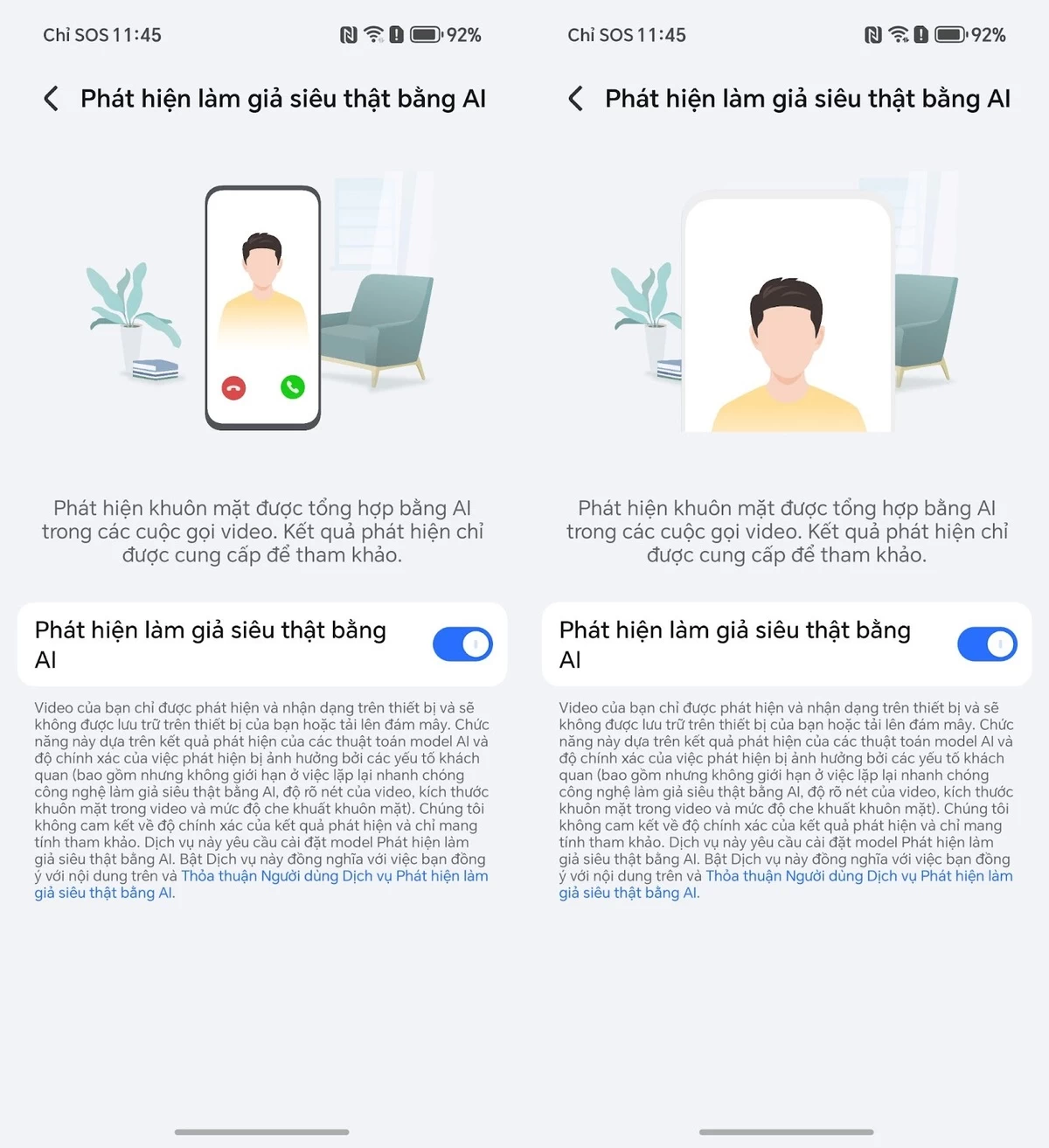 Dòng HONOR 400 Series được trang bị một tính năng rất cần thiết trong thời buổi trên mạng đầy những chiêu trò lừa đảo. Đó là tính năng phát hiện Deepfake bằng AI (AI Deepfake Detection). Khi người dùng nhận cuộc gọi video, hệ thống sẽ phân tích và cảnh báo nếu phát hiện dấu hiệu deepfake, tức là khi AI phát hiện khuôn mặt trong video đó được tạo bởi AI.