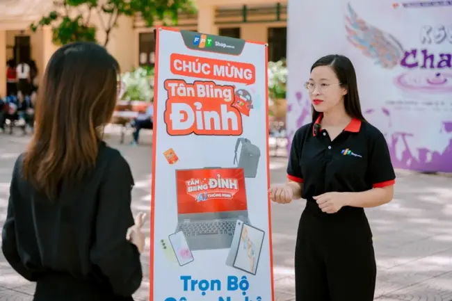 Song song với những phần quà ý nghĩa ấy, từ tháng 6-2025 FPT Shop đã triển khai chiến dịch “Tân Bling đỉnh– A.I thông minh” dành cho học sinh, sinh viên, kéo dài đến ngày 31-10-2025. Điểm nhấn của chương trình là đặc quyền tân sinh viên khi mua laptop/PC/LCD, thí sinh có điểm trung bình tốt nghiệp THPT 2025 trên 9 điểm được giảm thêm đến 10% (tối đa 8 triệu đồng), các mức điểm khác cũng được hưởng ưu đãi phù hợp. Bên cạnh đó, khách hàng còn được tặng SIM Tân Binh FPT với data 30GB/tháng và data không giới hạn cho YouTube, TikTok.