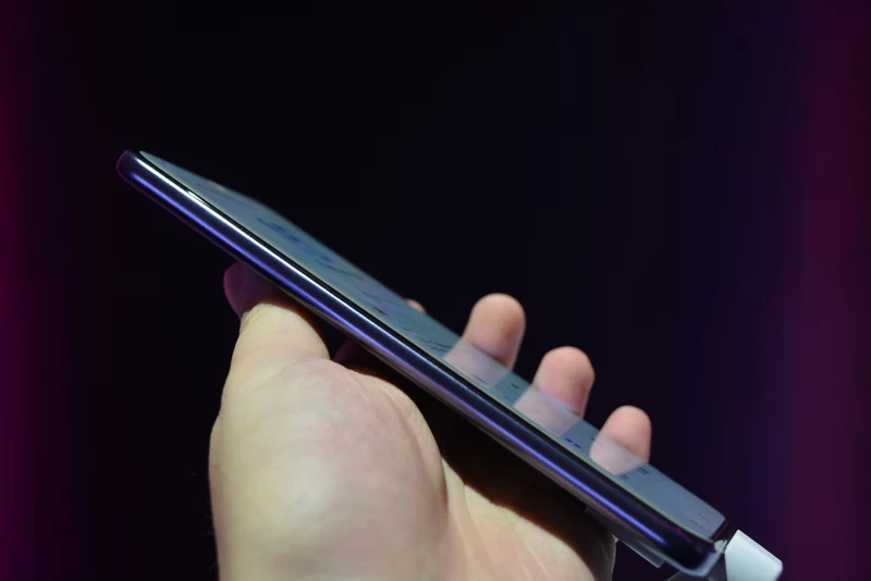 • Thiết kế màn hình viền cong nhẹ. Khung kim loại. Mặt trước kính, mặt sau kính (màu Tím) hay nhựa (màu Xám). Kháng nước và bụi chuẩn IP68/IP69.