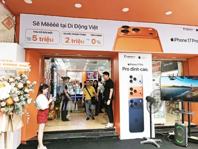 Di Động Việt, một đại lý ủy quyền của Apple tại Việt Nam, đã nhận về gần 27.000 lượt đăng ký với dòng iPhone 17 Series và iPhone Air. Ngoài các kênh online, các cửa hàng của Di Động Việt cũng ghi nhận lượng khách đến tham khảo chương trình đặt cọc khá đông.