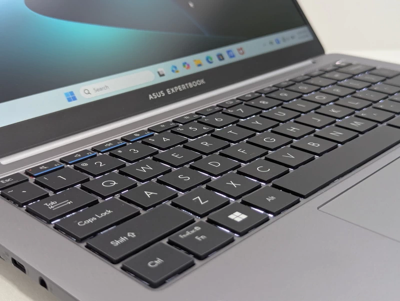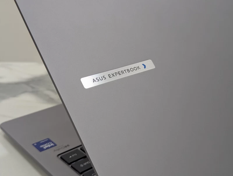 Ngôn ngữ thiết kế hiện đại, tối giản không chỉ mang lại vẻ ngoài cuốn hút mà còn tối ưu tính tiện dụng. Logo ASUS ExpertBook sáng bóng, được đặt khéo léo trên nắp máy, góp phần tạo nên dấu ấn sang trọng và chuyên nghiệp.