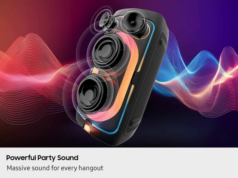 Cấu trúc âm học của sản phẩm được tái thiết kế mang đến công suất lên đến 240W, lấp đầy không gian bằng âm thanh giàu chi tiết với độ rõ ràng vượt trội và âm trầm (bass) sâu lắng. Nhờ công nghệ Waveguide được áp dụng cho hai loa tweeter dạng vòm kép (dual dome tweeters), âm thanh được phân bổ rộng và đồng đều hơn, mang đến dải cao trong trẻo dễ nghe. Hai loa woofer cho phép điều chỉnh âm trầm linh hoạt với ba chế độ: Mạnh mẽ (Punchy), Nhẹ nhàng (Gentle) và Sâu lắng (Deep), giúp người dùng tùy biến trải nghiệm theo sở thích. Ngoài ra, bốn chế độ âm thanh khác gồm Standard, Wide, Stadium và Outdoor cho phép tinh chỉnh âm thanh phù hợp với từng bối cảnh – từ tiệc BBQ ngoài sân vườn cho đến sàn nhảy sôi động.