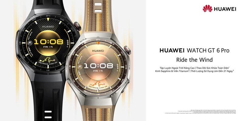 Dòng đồng hồ thông minh HUAWEI WATCH GT 6 Series đã được Huawei mở bán tại thị trường Việt Nam trong sự kiện ra mắt với chủ đề Ride The Wind (Đón Gió Dẫn Lối) ở TP.HCM chiều 2-10-2025. Có hai phiên bản HUAWEI WATCH GT 6 Pro và HUAWEI WATCH GT 6. Thiết bị được cải tiến toàn diện về thiết kế và tính năng, hứa hẹn mang đến trải nghiệm đẳng cấp mới.
