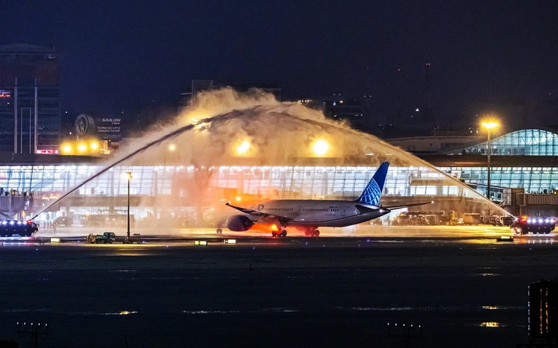 Rạng sáng 27-10-2025, Sân bay Tân Sơn Nhất đã tiến hành nghi thức Water Sallute để đón chào sự trở lại của United Airlines với những chiếc xe cứu hỏa phun vòi rồng tạo cổng chào bằng nước khi máy bay taxi qua.