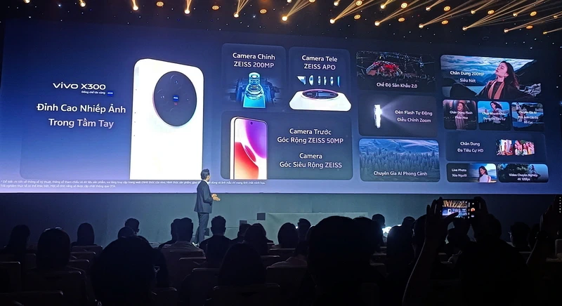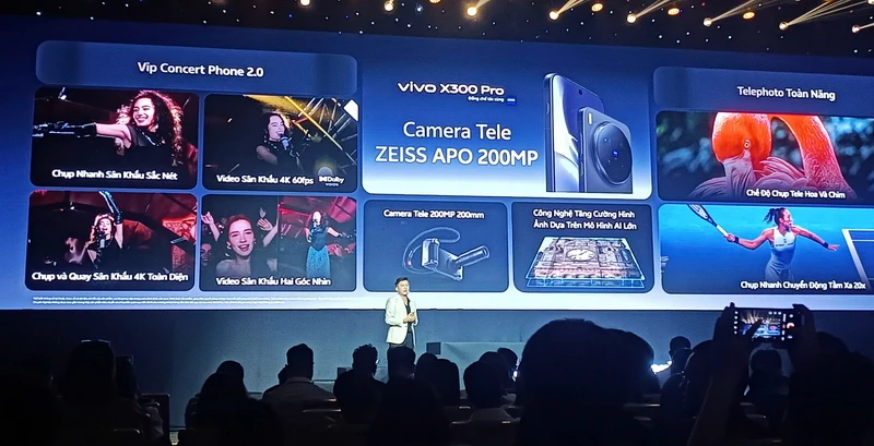 Sự kiện ra mắt vivo X300 Series tại TP.HCM với chủ đề “ZEISS Image. Go Further” (Nhiếp ảnh ZEISS. Vươn xa hơn) với toàn bộ phần livestream kéo dài hơn 2 giờ được ghi hình hoàn toàn bằng chính dòng smartphone vivo X300 Series. Việc “thực chiến” này vừa giúp chứng minh khả năng của dòng vivo X300 Series, vừa cho thấy sự tự tin của vivo vào sức mạnh của bộ đôi camera ZEISS 200MP mới. Kết quả, chất lượng hình ảnh sắc nét, màu sắc ổn định và khả năng bắt chuyển động tốt trong điều kiện sân khấu nhiều ánh sáng phức tạp. Đặc biệt là với bộ ống kính rời vivo ZEISS 2.35x Telephoto Extender Kit của vivo X300 Pro tăng tiêu cự để chụp ảnh từ xa.