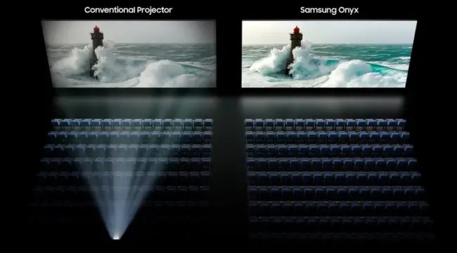Samsung Onyx là màn hình LED dành cho rạp chiếu phim đầu tiên trên thế giới đạt chứng nhận Digital Cinema Initiatives (DCI), mang đến trải nghiệm hình ảnh 4K HDR với độ chính xác màu sắc cao, sắc đen sâu và độ tương phản gần như vô hạn.