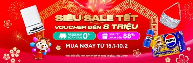 Lazada Việt Nam ngày 12-1-2026 cho biết: Đón mùa mua sắm cao điểm mừng Tết Bính Ngọ 2026, sàn thương mại điện tử Lazada Việt Nam chính thức khởi động chiến dịch “Siêu Sale Tết” từ ngày 15-1 đến 10-2-2026. Với thời gian triển khai dài và loạt ưu đãi nổi bật như giảm giá đến 88%, voucher lên đến 8 triệu đồng, trợ giá đến 8 triệu đồng cùng freeship toàn sàn, chiến dịch mang đến cho người tiêu dùng Việt cơ hội chủ động lên kế hoạch mua sắm sớm, tối ưu chi tiêu cho một mùa Tết trọn vẹn trong bối cảnh nhịp sống ngày càng bận rộn.