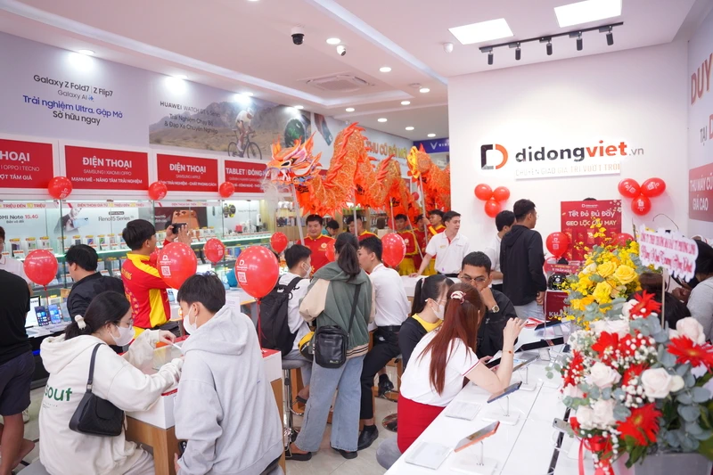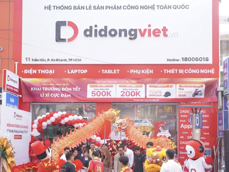 Trung tâm mua sắm công nghệ mới của Di Động Việt tại số 11 Trần Não (Phường An Khánh, TP.HCM) đã được khai trương sáng 8-2-2026. Hàng trăm khách hàng đã check-in từ sớm để săn loạt ưu đãi hấp dẫn, đặc biệt là trúng vàng may mắn.
