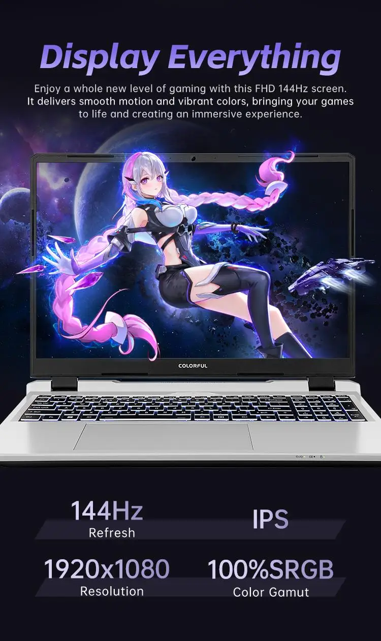 • Màn hình IPS 15.6 inch, độ phân giải 1920×1080 pixel, tần số quét 144Hz, 100% sRGB