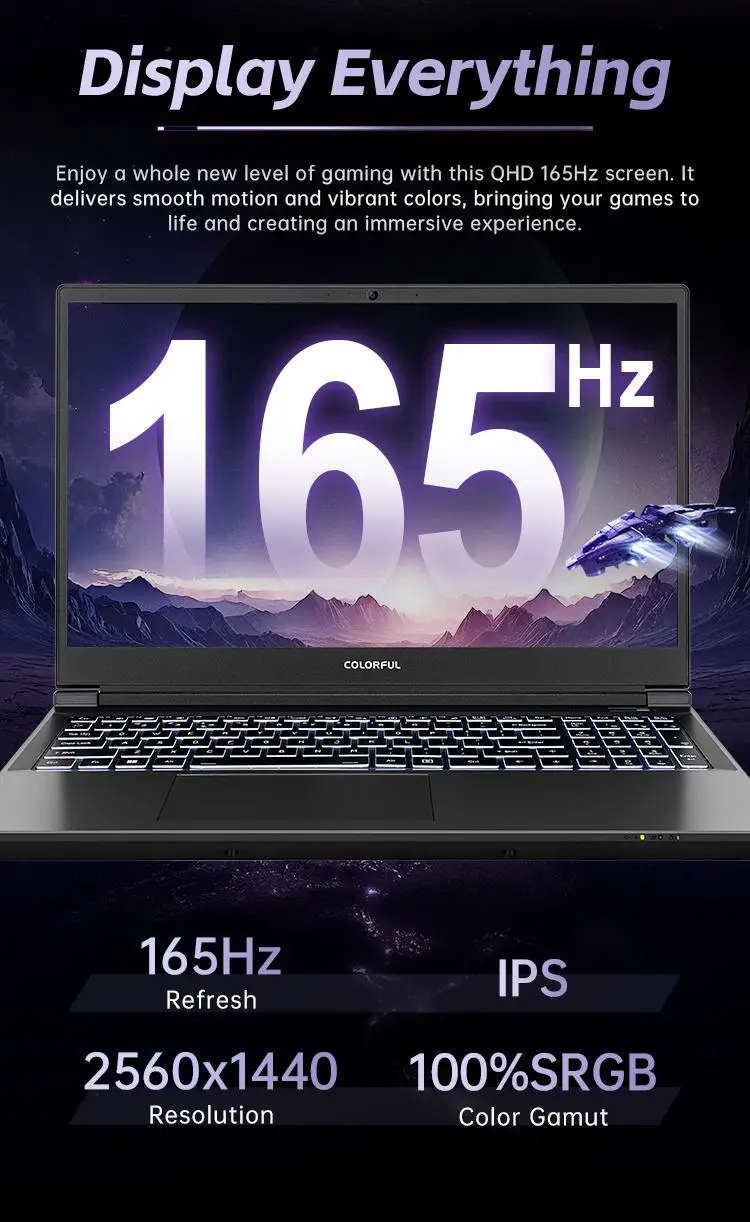 • Màn hình IPS 15.6 inch, độ phân giải 2560×1440 pixel, tần số quét 165Hz, 100% sRGB