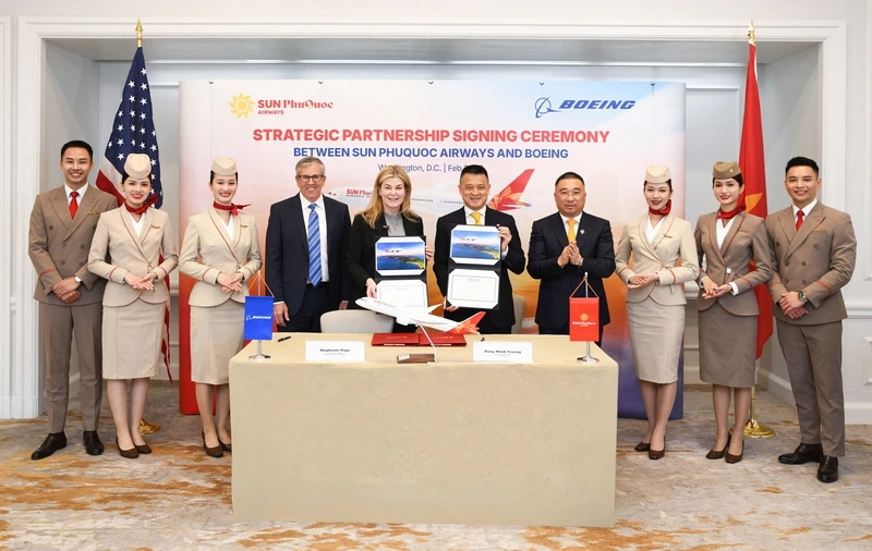 Hãng sản xuất máy bay Mỹ Boeing ngày 18-2-2026 cho biết: Boeing và hãng hàng không Sun PhuQuoc Airways (Việt Nam) vừa công bố thỏa thuận đặt mua lên tới 40 máy bay 787 Dreamliner nhằm xây dựng đội bay thân rộng chủ lực. Hợp đồng này trị giá 22,5 tỷ USD. Hãng hàng không thuộc Tập đoàn Sun Group này sẽ khai thác dòng 787 Dreamliner tầm xa, tiết kiệm nhiên liệu vượt trội, để kết nối hành khách quốc tế tới trung tâm hoạt động tại Cảng Hàng không Quốc tế Phú Quốc.