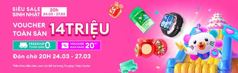Lazada Việt Nam ngày 17-3-2026 cho biết: Nền tảng thương mại điện tửLazada sẽ mừng sinh nhật lần thứ 14 với lễ hội mua sắm “Siêu Sale Sinh nhật” diễn ra từ 20h ngày 24-3 đến hết ngày 27-3-2026. Trong suốt thời gian diễn ra sự kiện, người dùng có cơ hội “săn” những ưu đãi hiếm có như deal mua 1 tặng 1, voucher toàn sàn trị giá lên đến 14 triệu đồng, hưởng ưu đãi độc quyền lên đến 50% từ LazMall và khám phá hơn 7.000 gian hàng quốc tế chính hãng. Không chỉ vậy, Lazada còn mang đến sự kiện Lazada Run Wellness Fest, lễ hội mừng sinh nhật Lazada đồng thời tôn vinh tinh thần sống khỏe đúng nghĩa, nơi người tham gia được trải nghiệm hàng loạt hoạt động sôi động với sự đồng hành của nhiều thương hiệu đã gắn bó lâu năm cùng Lazada.