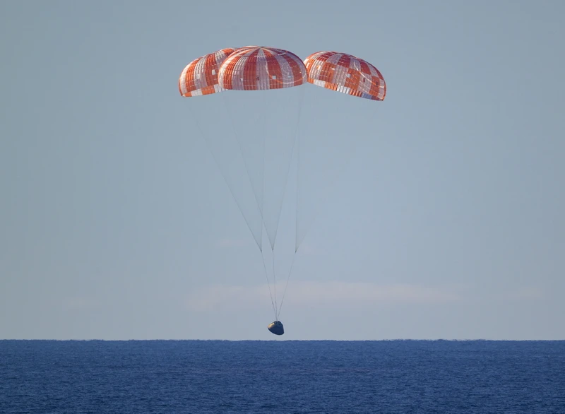 Phi thuyền Orion của phi vụ Artemis II đáp xuống biển Thái Bình Dương. (Ảnh: NASA).