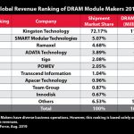 Bảng xếp hạng DRAMeXchange của TrendForce đã tiếp tục chọn Kingston ở vị trí số 1 của năm 2018 giúp công ty giải pháp công nghệ và sản phẩm bộ nhớ của Mỹ này tiếp tục dẫn đầu trong số các nhà cung cấp bộ nhớ RAM trên thế giới liên tục 16 năm liền.
