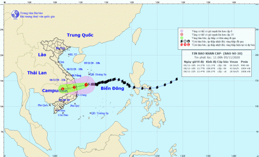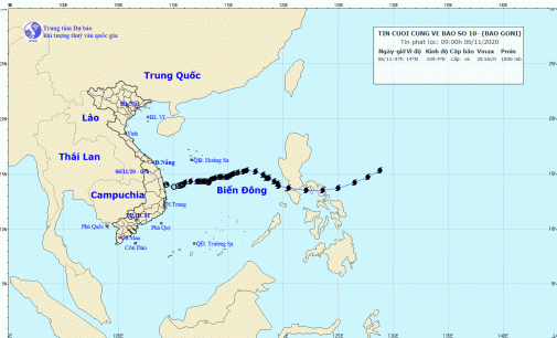 1. Sáng 6-11-2020, Trung tâm Dư báo Khí tượng – Thủy văn Quốc gia phát bản tin cuối cùng về cơn bão số 10 (tên quốc tế Goni). Do ảnh