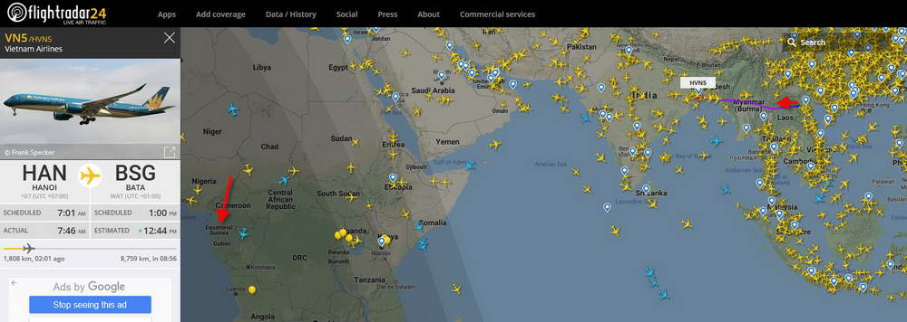 Vào lúc gần 10g sáng thứ Ba 28-7-2020 (giờ VN), theo dõi trên Flightradar24, tôi thấy chuyến bay HVN5 (VN5022) của Hàng không Việt Nam khởi hành từ Sân