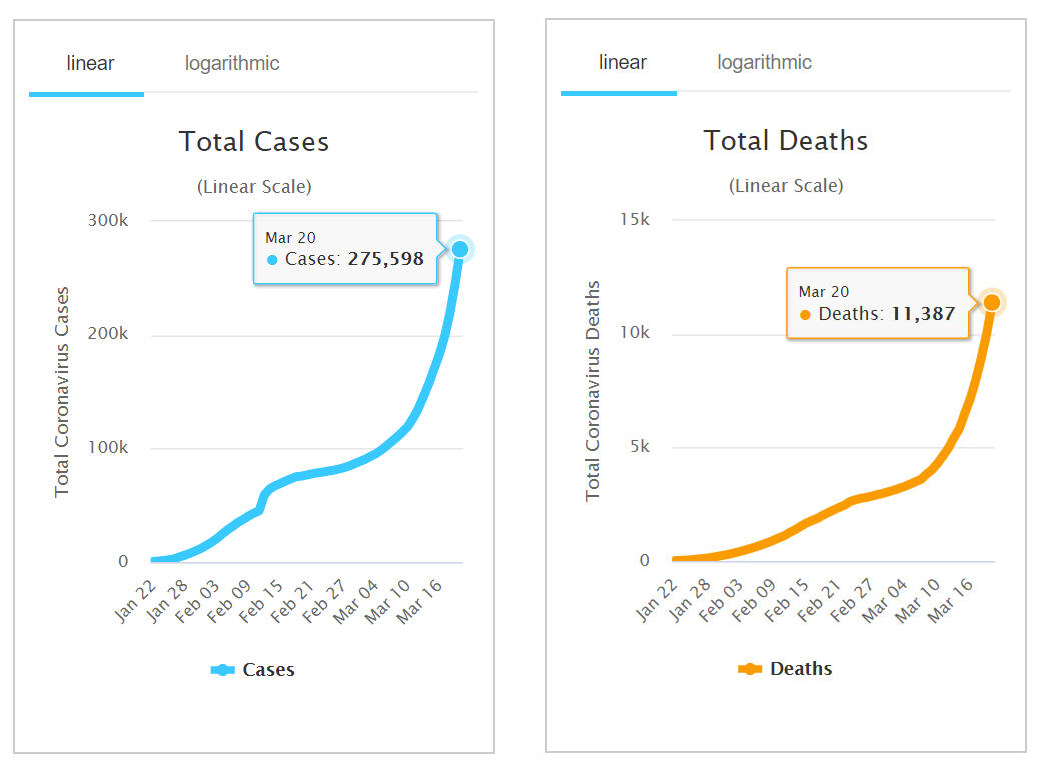 Thế giới trải qua một ngày 20-3-2020 với số người nhiễm và chết trong một ngày cao kỷ lục,