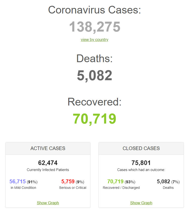 Ngày thứ Sáu 13-3 kinh khủng với 448 người chết, có tỷ lệ tăng tử vong 9% (cao nhất kể từ ngày 16-2-2020), tổng cộng có 5.429 người