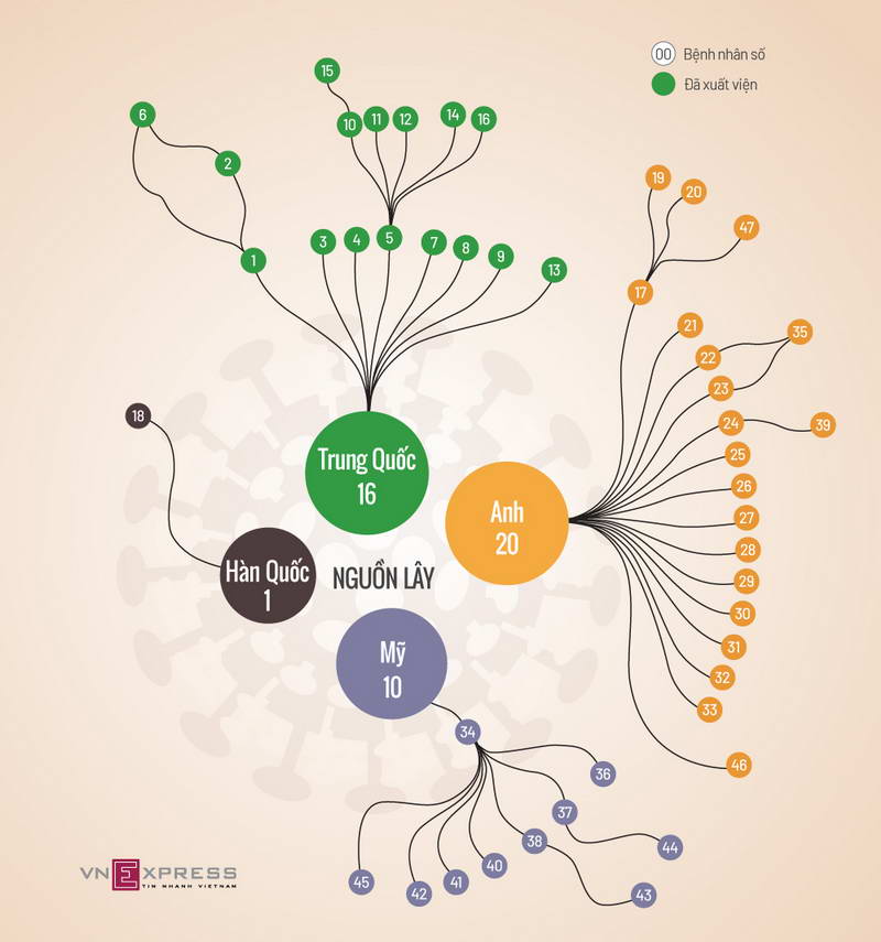 Hai cái infographics về 47 ca nhiễm Wuhan novel coronavirus của Thông tấn xã Việt Nam và VnExpress có