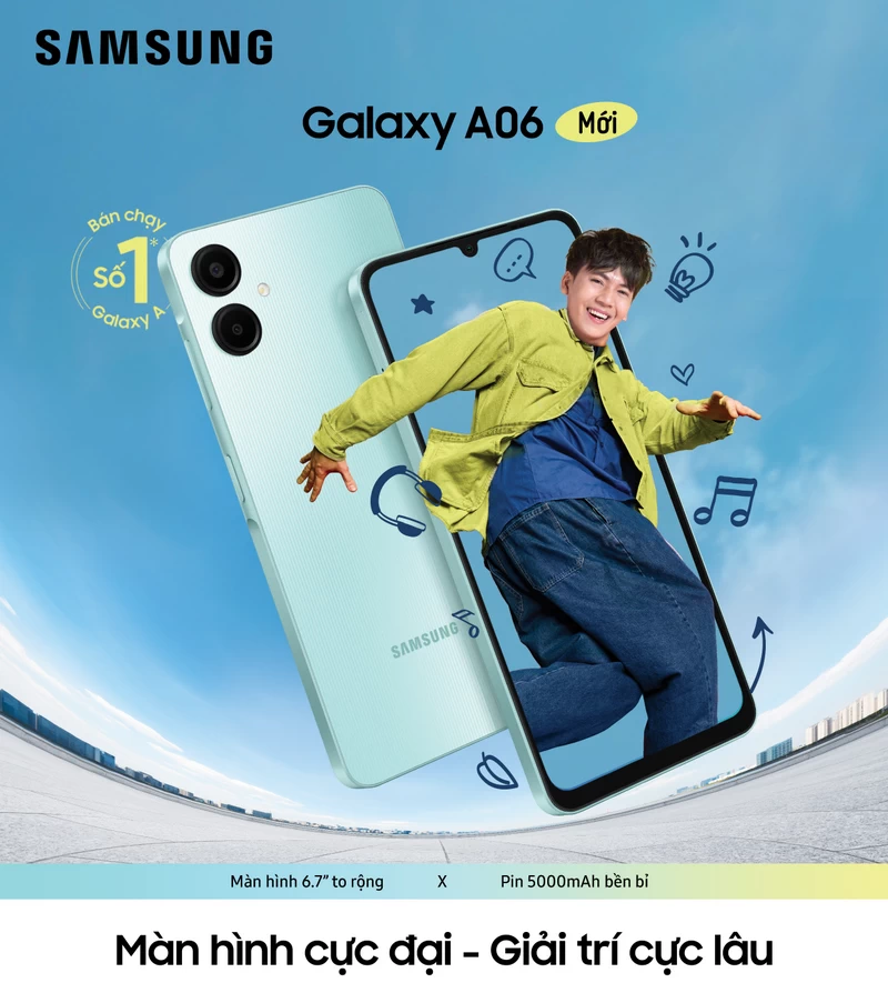 Công ty Điện tử Samsung Vina đã ra mắt smartphone phân khúc phổ thông Galaxy A06 tại thị trường Việt Nam. Sản phẩm có màn hình lớn, pin lâu bền bỉ