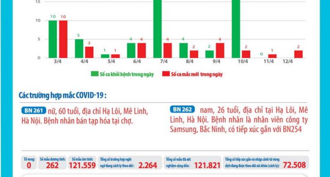- Tổng số ca bình phục trong ngày 12-4: 0