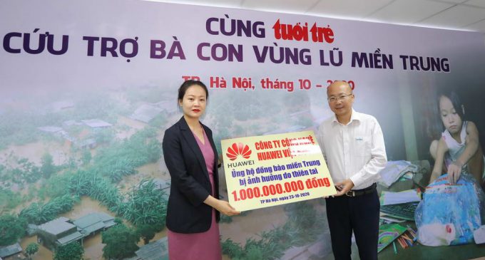 Công ty Công nghệ Huawei Việt Nam (Huawei Việt Nam) ngày 23-10-2020 tại Hà Nội đã trao cho chương trình vận động cứu trợ bà con vùng lũ miền Trung do báo Tuổi Trẻ tổ chức số tiền 1 tỷ đồng mà công ty cùng toàn thể cán bộ, nhân viên của mình đã chung tay quyên góp. Số tiền này sẽ được dùng để mua các vật tư, cây giống, con giống và chuyển tới tận tay những người dân miền Trung bị ảnh hưởng do lũ lụt, giúp bà con vượt qua khó khăn, nhanh chóng ổn định lại cuộc sống.