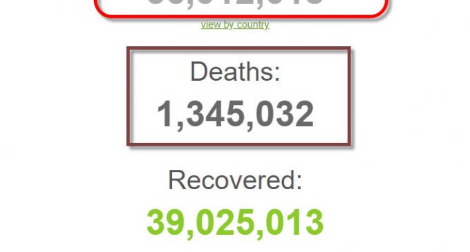 | World | 56,012,018 | +77,317 | 1,345,032 | +2,090 | 39,025,013 | 15,641,973 | 100,750 | 7,186 | 172.6 | ||||