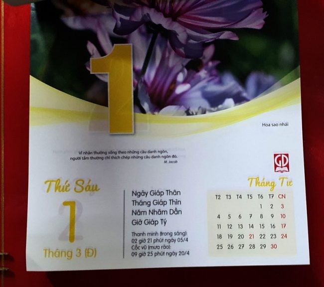 Hôm nay nhìn tờ lịch, bạn thấy gì hôn? Ngày 1-4-2022 cũng là ngày 1 tháng 3 năm Nhâm Dần.