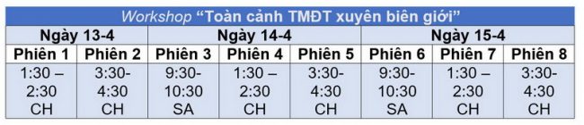 - Workshop “Bắt đầu cùng thương mại điện tử xuyên biên giới”: chuỗi 8 workshop diễn ra xuyên suốt triển lãm do Amazon Global Selling tổ chức, cung cấp cho khách tham quan cái nhìn cận cảnh về: (1) Xu hướng giao thương mới: TMĐT xuyên biên giới. (2) Bán hàng trên Amazon: Cách Amazon hỗ trợ đối tác bán hàng Việt Nam xây dựng thành công thương hiệu quốc tế, tận dụng nền tảng, nguồn lực toàn cầu và các giải pháp toàn diện về TMĐT xuyên biên giới của Amazon.