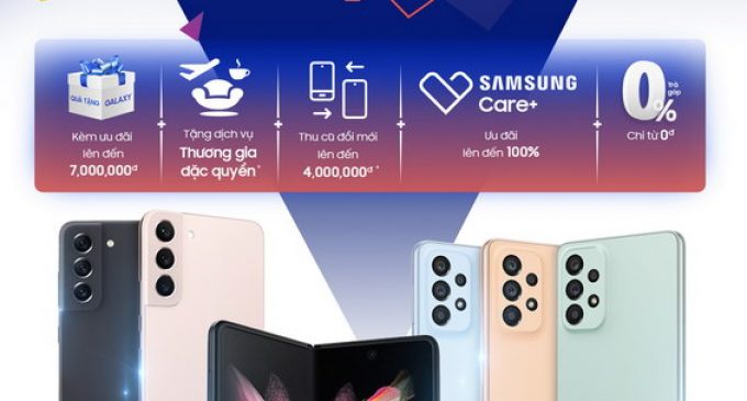 Công ty Điện tử Samsung Vina ngày 23-4-2022 đã thông báo về chương trình ưu đãi “Bùng nổ ưu đãi – Chốt ngay quà xịn” dành cho các khách hàng mua các dòng sản phẩm Samsung Galaxy. Chương trình ưu đãi áp dụng trên nhiều thiết bị, nhiều dòng sản phẩm điện thoại cũng như máy tính bảng từ Samsung. Nổi bật nhất cho ưu đãi lần này là dòng điện thoại phổ thông Galaxy A mới ra mắt tring năm 2022.