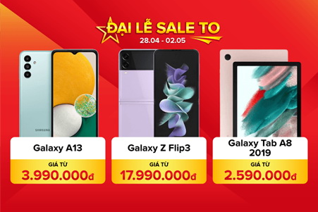 Riêng các model đến từ thương hiệu Samsung cũng có mức giá thấp kỷ lục trong dịp lễ này. Dòng điện thoại Samsung A series như A33, A13 lần lượt có giá bán 6,99 triệu đồng và 3,99 triệu đồng. Mẫu flagship Samsung Z Flip 3 lần đầu có giá bán thấp kỷ lục chỉ từ 17,99 triệu đồng.