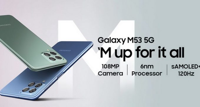 Công ty Điện tử Samsung Vina ngày 28-4-2022 đã ra mắt thị trường Việt Nam smartphone Galaxy M53 5G thuộc phân khúc tầm trung với thiết kế mỏng nhẹ, có hiệu năng cao hàng đầu trong tầm giá với kết nối 5G và màn hình 120Hz nâng tầm trải nghiệm giải trí. Thiết bị tăng cường khả năng đa nhiệm với hiệu suất cao nhờ tính năng mở rộng bộ nhớ RAM Plus thêm đến 8GB RAM ảo (ROM 128GB). Cụm bốn camera với camera chính 108MP. Đây là thành viên mới trong dòng Galaxy M series ra đời tháng 2-2019 với 2 model đầu tiên M10 và M20 được mệnh danh là “mãnh thú” (Monster).