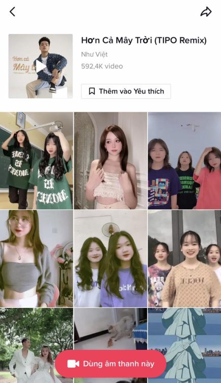 Cũng là một “bông hoa nở muộn”, “Hơn Cả Mây Trời” đã có màn lội ngược dòng ngoạn mục trên đường đua âm nhạc TikTok khi bản gốc phát hành cách đây 3 năm chưa tạo được hiệu ứng tích cực từ người hâm mộ. Là bản ballad nhẹ nhàng kể về tình cảm của chàng trai dành cho người mình yêu “nhiều hơn cả mây trời không ai bằng anh đâu”, ca khúc nay đã nổi lên như một hiện tượng nhờ phiên bản remix đầy trẻ trung và sôi động của DJ TIPO. Kết hợp cùng hiệu ứng “Syrup II”, bài hát đã tạo nên hàng loạt video nhảy dễ thương, thu hút hơn 665 triệu lượt xem và là nhạc nền của hơn 1,5 triệu video.