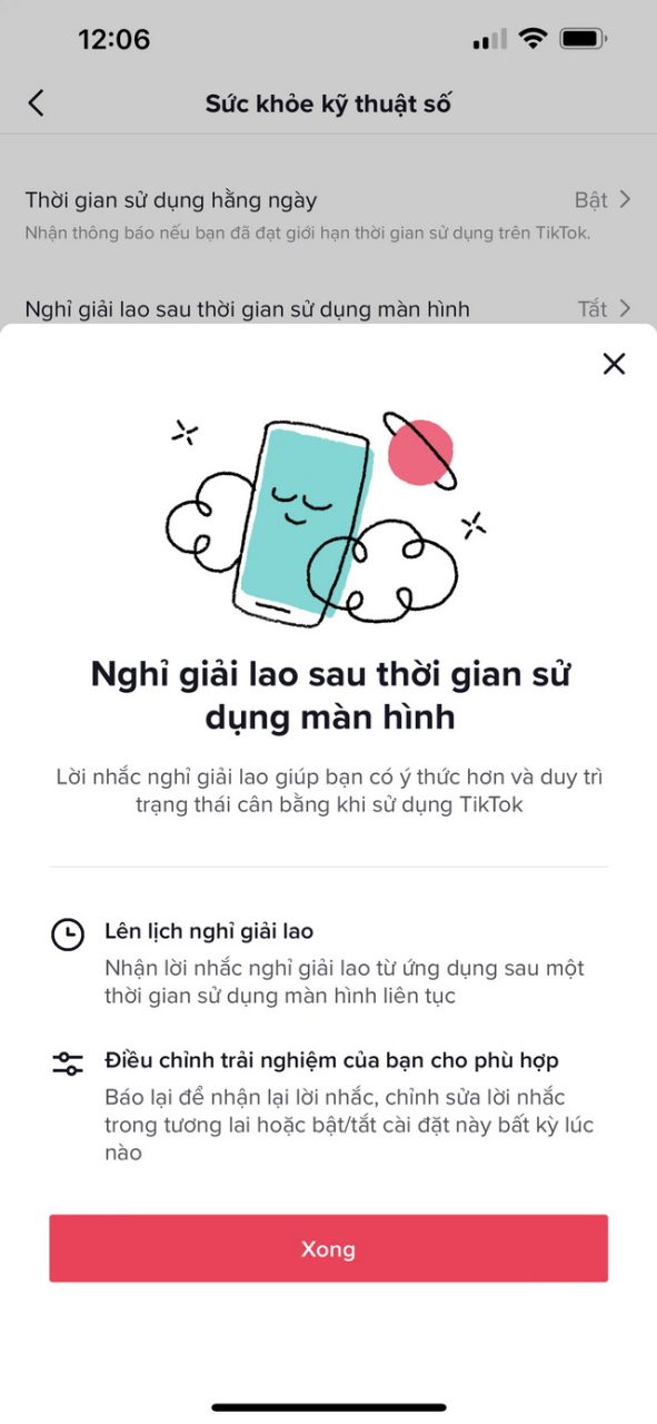 Nhằm khuyến khích người dùng phát triển các thói quen sử dụng nền tảng trực tuyến một cách lành mạnh, TikTok vừa cập nhật tính năng tự động nhắc nhở người dùng nghỉ giải lao khi thời gian sử dụng TikTok đã đạt đến giới hạn do chính họ cài đặt. Trước đây, TikTok đã từng cho ra mắt tính năng Quản lý Thời gian Sử dụng Màn hình (Screen Time Management) giúp người dùng kiểm soát thời gian sử dụng TikTok hàng ngày. Tiếp nối nỗ lực ấy, TikTok cập nhật tính năng cho phép người dùng kiểm soát thời gian sử dụng TikTok thông qua cài đặt thời gian ngắt màn hình. Tính năng này sẽ giúp người dùng cải thiện sức khỏe kỹ thuật số của bản thân khi sáng tạo và khám phá nội dung trên nền tảng.